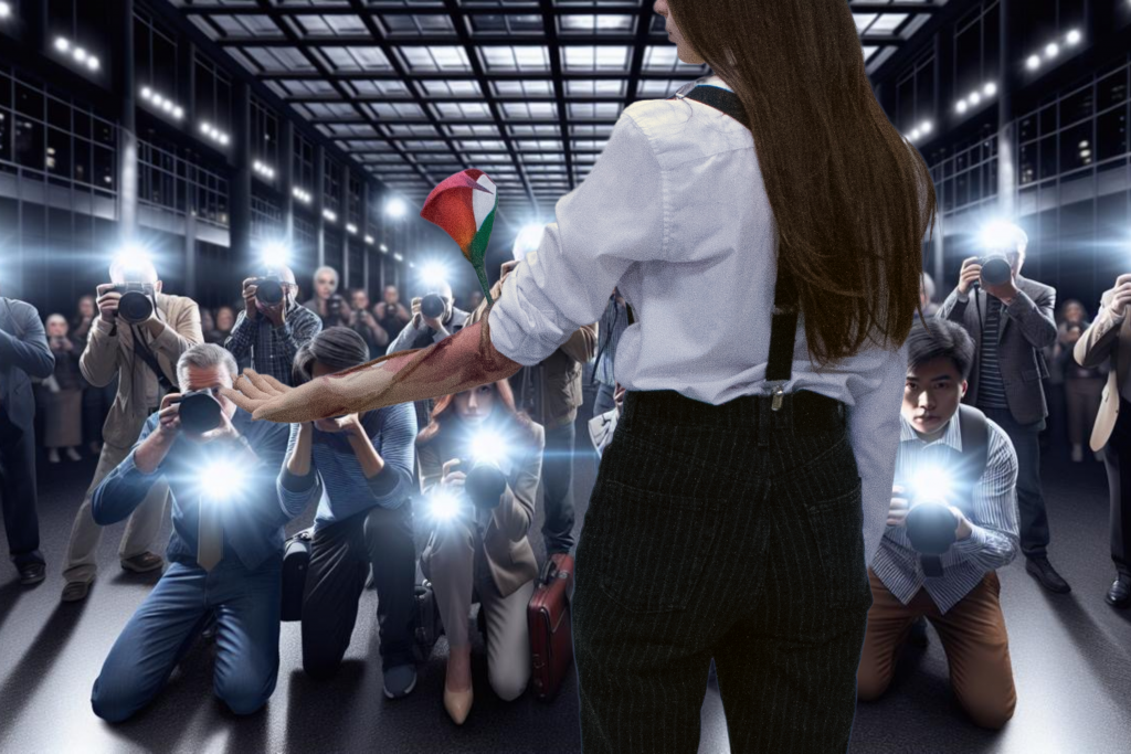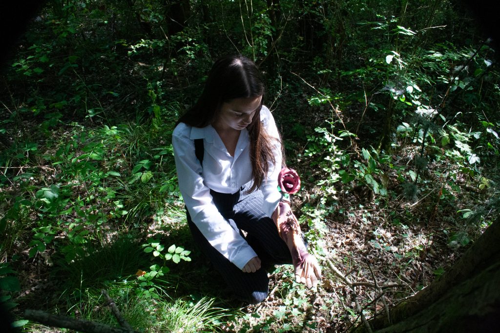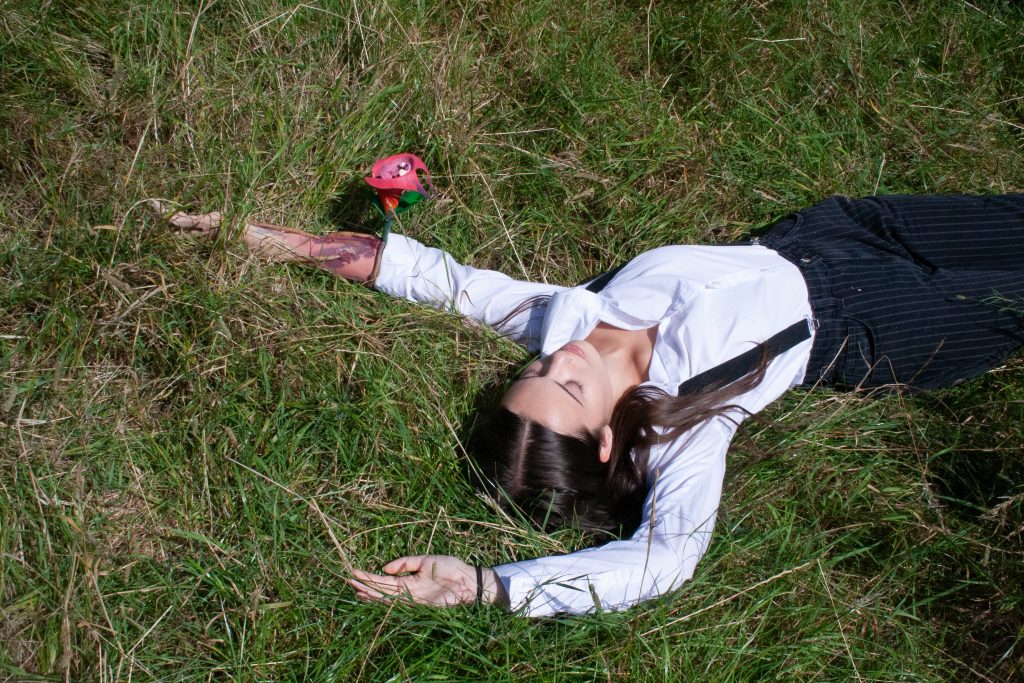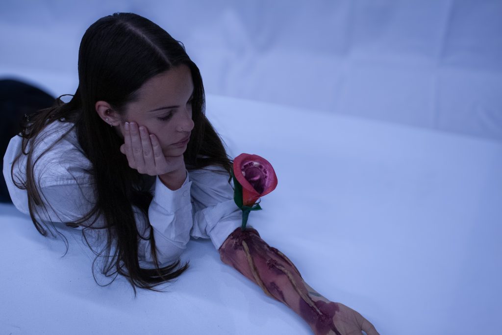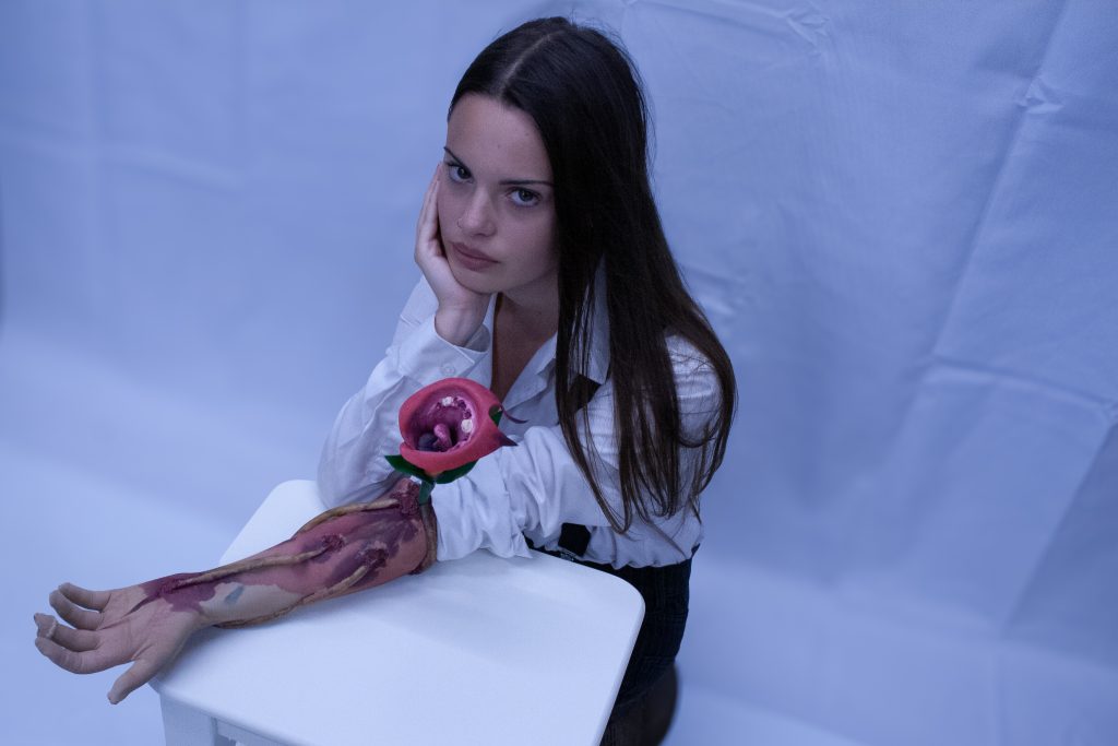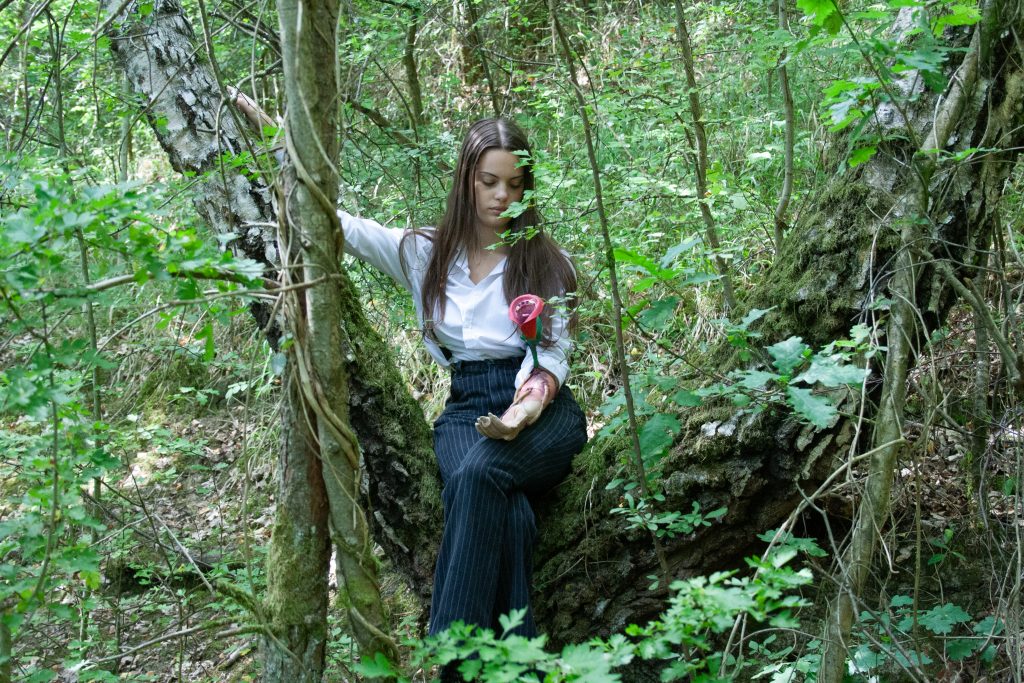 The Moaning Lily is the story of a botanist who is so consumed by his work that he grafts a rare flower onto his own arm despite knowing that it will cause his death. It is a story of obsession and a gothic-horror. I chose to make this a body-horror puppet, trying to make the flesh and skin on there glove look as real as possible. A wire runs from the middle finger to the tongue so that when the hand moves the tongue does too. This puppet was photographed in a studio photoshoot and an on-location photoshoot. I also made a short film using an extract from the short story. I also used an AI image generator and photoshop to edit one of the studio photographs to look as though the model is showing the puppet to the world press at a flower show, like in the story. I curated the rest of the outfit but did not make it.
